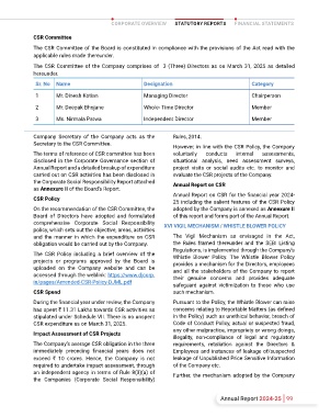 Financial Year 2024-25. The Internal Auditor reports The Company believes that as a responsible corporate CSR expenditure as on March 31, 2025. Code of Conduct Policy, actual or suspected fraud,