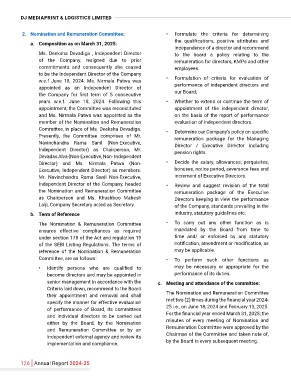 Committee, in place of Ms. Deeksha Devadiga. • Determine our Company’s policy on specific consequently she ceased to be the Independent Director of the Company w.e.f June 18, 2024. Ms. Nirmala