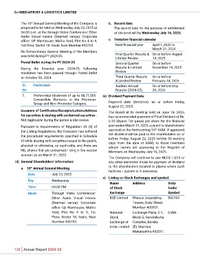 Pursuant to requirements of Regulation 39 (4) of year ended March 31, 2025, subject to shareholders’ October, 2024 128.50 110.65 78,704 127.96 110.30 2,82,000