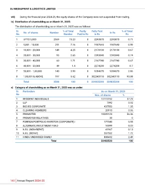 ix) Distribution of shareholding as on March 31, 2025: The equity shares of the Company are listed on BSE of duplicate securities certificate, claim
