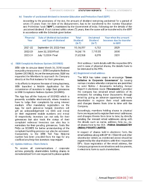 The Company continues to comply with the in respect of the shares held. System (SCORES). As per the new process, SEBI has vii) Registered email address