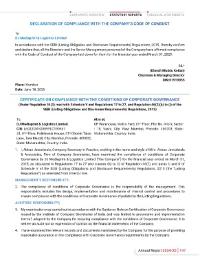 2025 and that to the best of our knowledge and belief: with the Code of Conduct of the Company laid down for them for the financial year ended March 31, 2025.