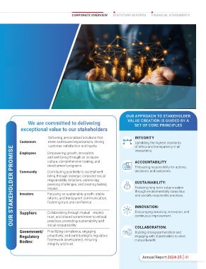 - Enhance customer experience and loyalty OUR STAKEHOLDER PROMISE pressing challenges, and creating lasting SUSTAINABILITY: