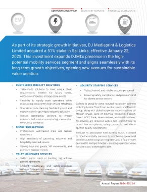 service partner in car rentals and manpower solutions, » Modern, diverse fleet comprising sedans, MUVs, » Professional, well-trained male and female Through its association with Sailinks, DJML is poised