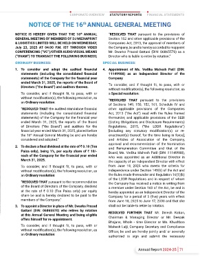 & LOGISTICS LIMITED WILL BE HELD ON WEDNESDAY, Companie Act, 2013, the approv of member of