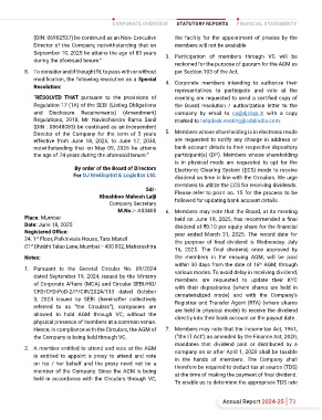as they may in their absolute discretion deem Secretarial Auditor of the Company September 10, 2025 he attains the age of 83 years 3. Participation of members through VC will be