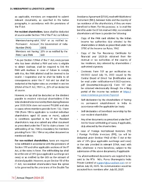 to be withheld accordance the provisio of or the rate provided in relevant DTAA, read with holding shares in dematerialized mode, physical for 2024-25, the Notice of the 16 AGM, and