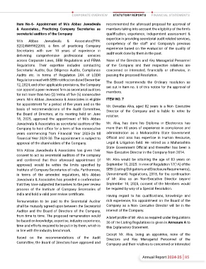 time commitment, has recommended to the Board Mr. Navinchandra Rama Sanil fulfils the conditions years. M/s Abbas Jawadwala & Associates is eligible ITEM NO. 7