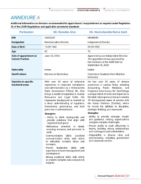 Mr. Navinchandra Rama Sanil, is aged 73 years. 36 of the Listing Regulations, is given in Annexure A to Non-Executive Director Independent Director