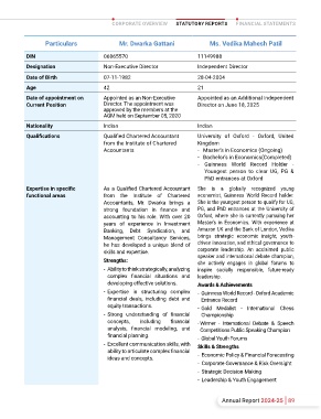 Directorships held in Nil Nil Particulars Mr. Dwarka Gattani Ms. Vedika Mahesh Patil