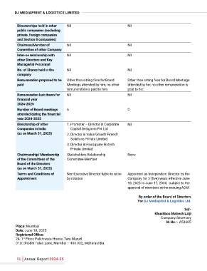 Chairman/Member of Nil Nil The Board of Directors of DJ Mediaprint & Logistics Limited (“The Company” or “DJML”) are pleased to present their