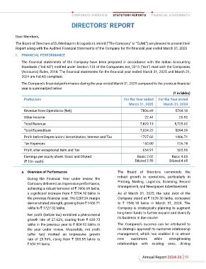 Chairman/Member of Nil Nil The Board of Directors of DJ Mediaprint & Logistics Limited (“The Company” or “DJML”) are pleased to present their